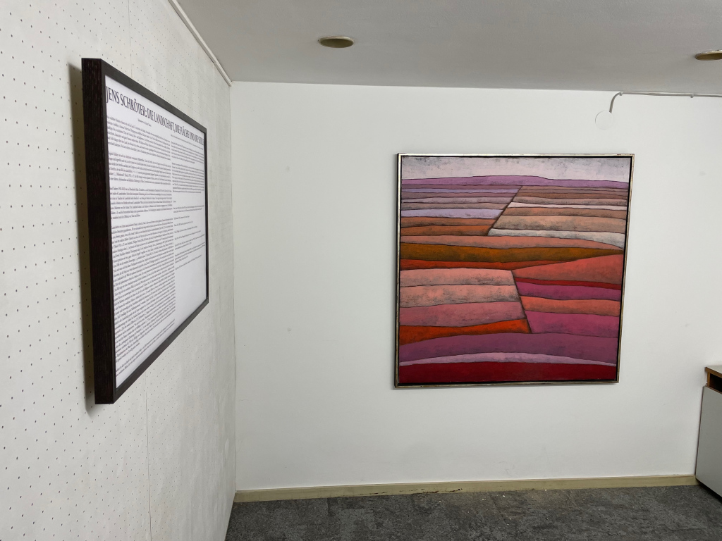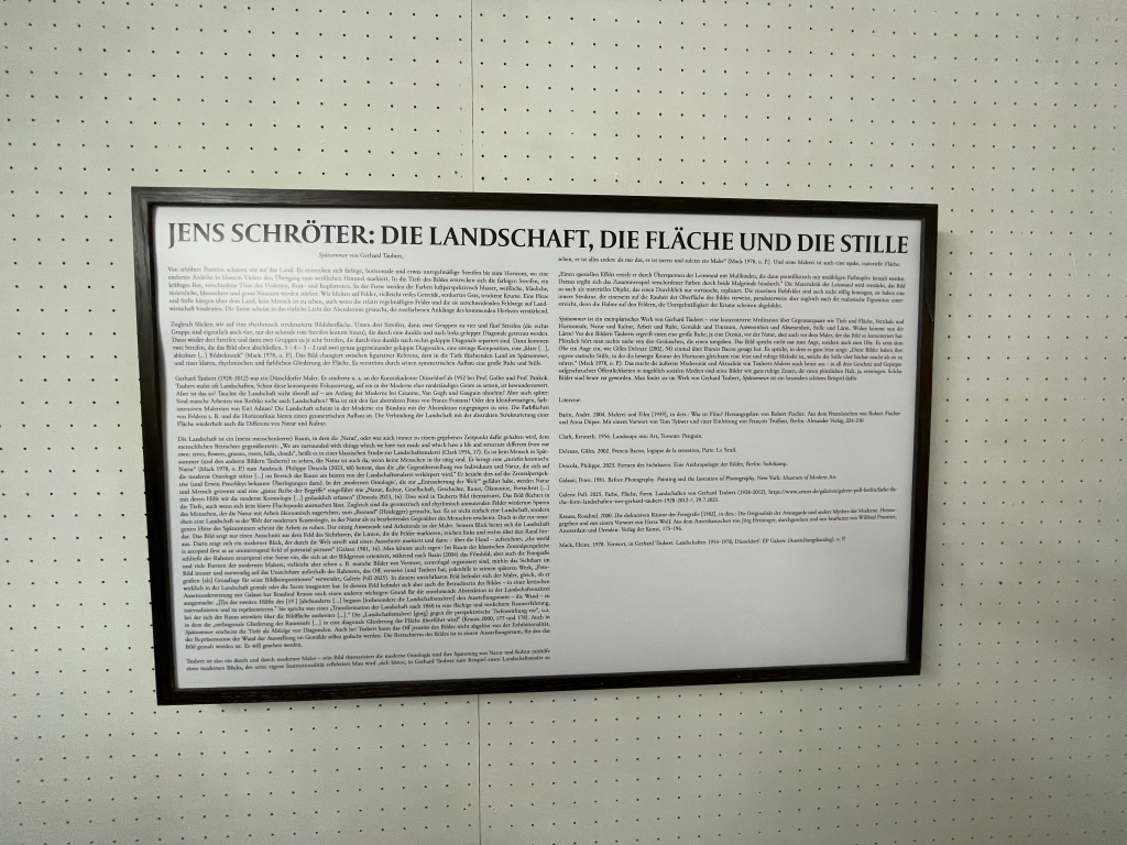 A new text by Jens Schröter is exhibited in the framework of a conceptual art installation by Emma Rüther. The text is on a painting by Gerhard Taubert (as shown on the right) and is exhibited side by side with the painting.