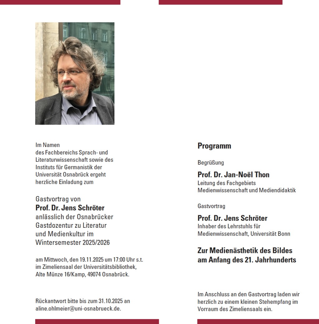 Prof. Dr. Jens Schröter organized together with Prof. Dr. Mersmann, Institute of Art History Bonn and Dr. Svea Bräunert, ZEM Brandenburg (and subsitute Prof. in Bonn in WS 25/26) a lecture series ABSTRACTION TODAY!