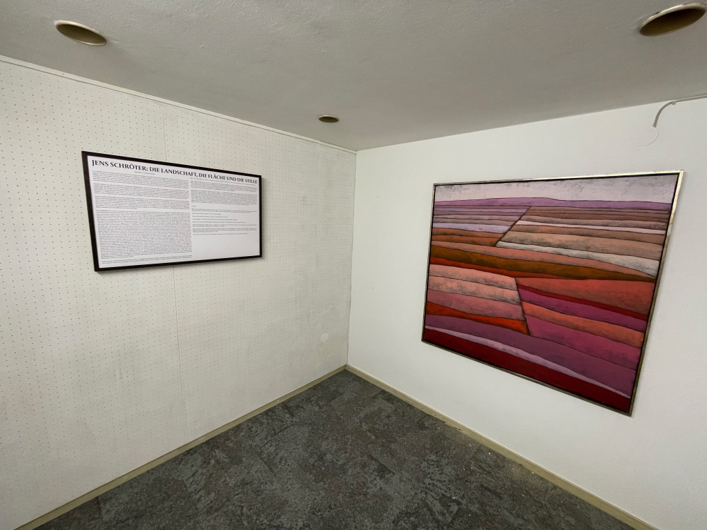 A new text by Jens Schröter is exhibited in the framework of a conceptual art installation by Emma Rüther. The text is on a painting by Gerhard Taubert (as shown on the right) and is exhibited side by side with the painting.